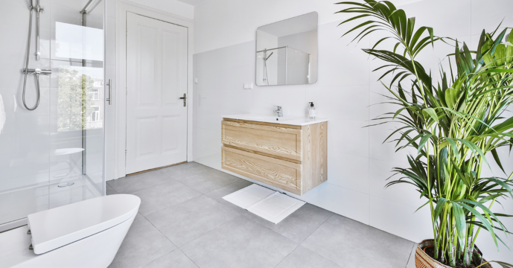 There is just no place we can’t insert a little greenery – bathrooms are no longer an exception to that rule! Against the stunning white of your bath or tiles, a healthy green palm or two add that extra fresh/back to nature feel that so many of us are looking to create in a modern bathroom. Feeling inspired to give your own bathroom a facelift, but dealing with grubby grout at your place? Arrange a free, fast quote for grout repair, replacement, and/or leaking shower repair today and you’ll get to experience the added benefits of our incredible new sealer spray product, too!